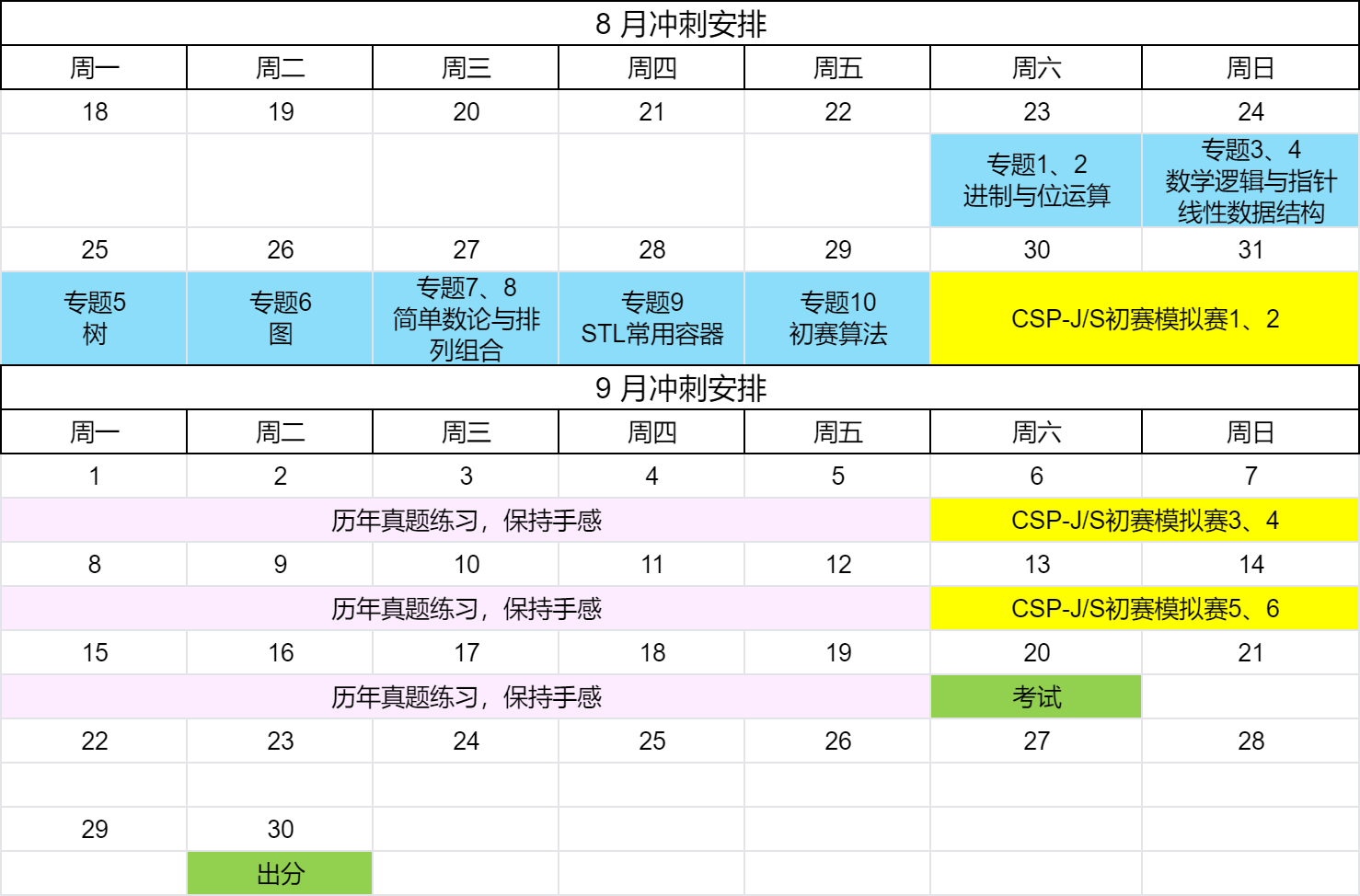 表彰2025年8月21日~2025年8月29日连续7天完成初赛复习打卡